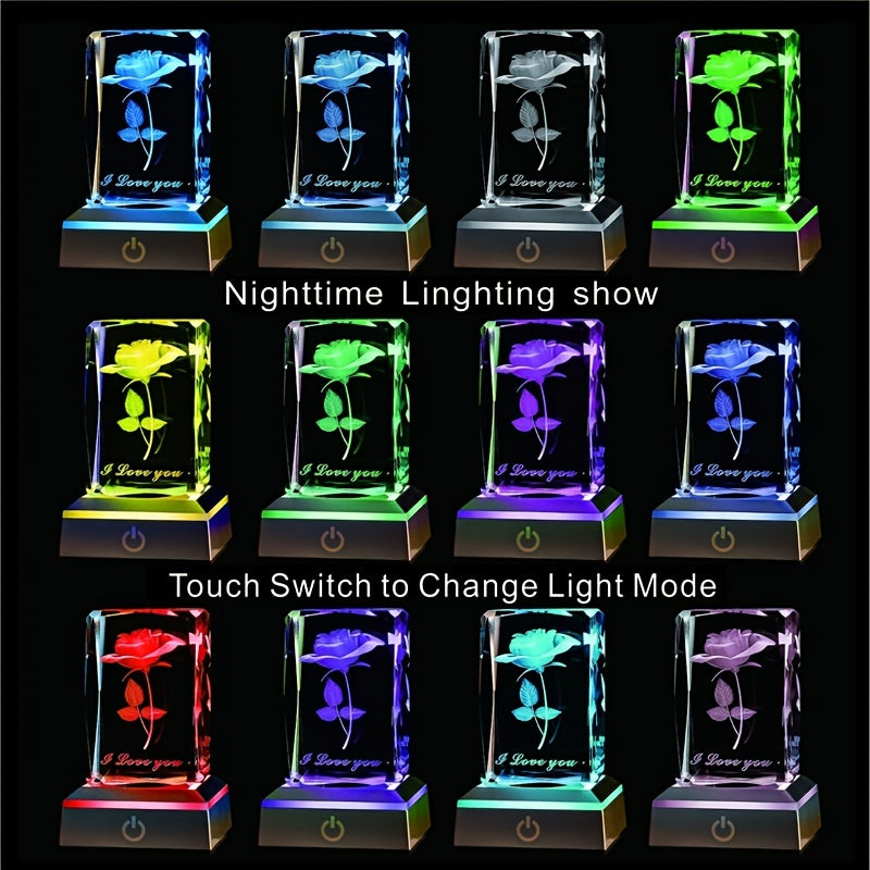 1pc 3D Rose Crystal With LED Color Lamp, Mother's Day Gift, Birthday Present For Girlfriend, Wife, Mother, Friendship Love Commemorate Unique Anniversary Rose